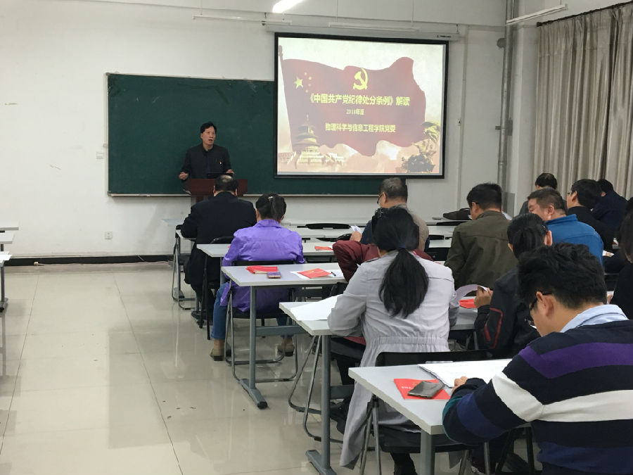10月18日下午,学院党委书记杨连祥同志主持召开党员学习会议,围绕新颁发的《中国共产党纪律处分条例》讲党课。