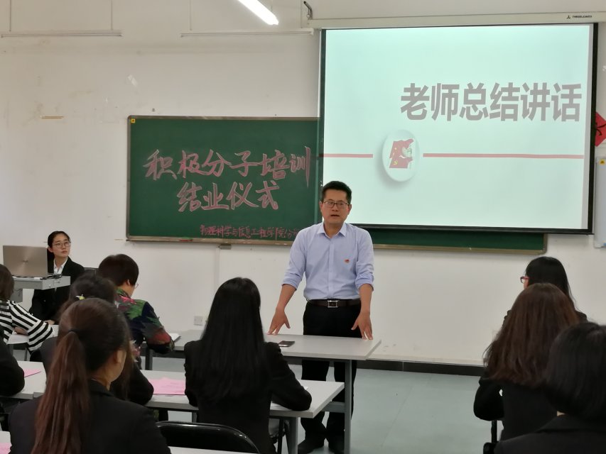 5月10日,小宝影院 在理科楼2A308举行入党积极分子培训班结业仪式,党委书记张书敏、副书记顾连忠、辅导员刘翌欣和2017级入党积极分子参加了本次结业仪式。