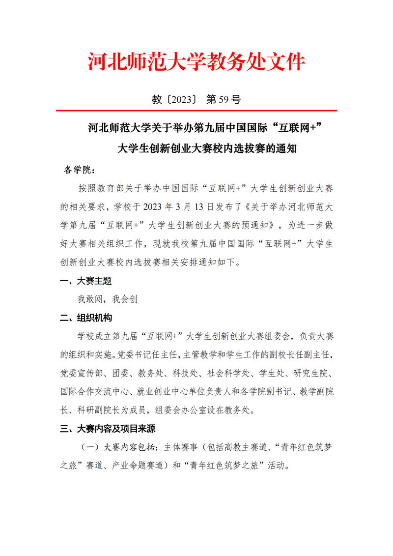 关于举办第九届中国国际“互联网+”大学生创新创业大赛校赛的通知