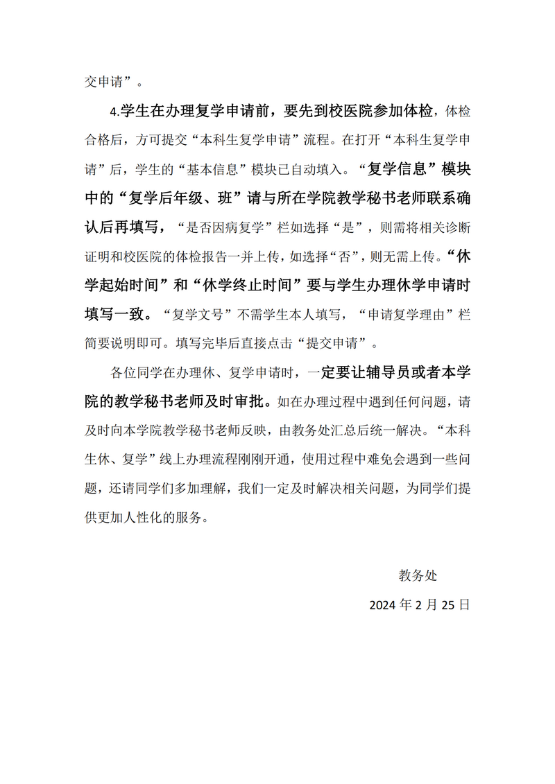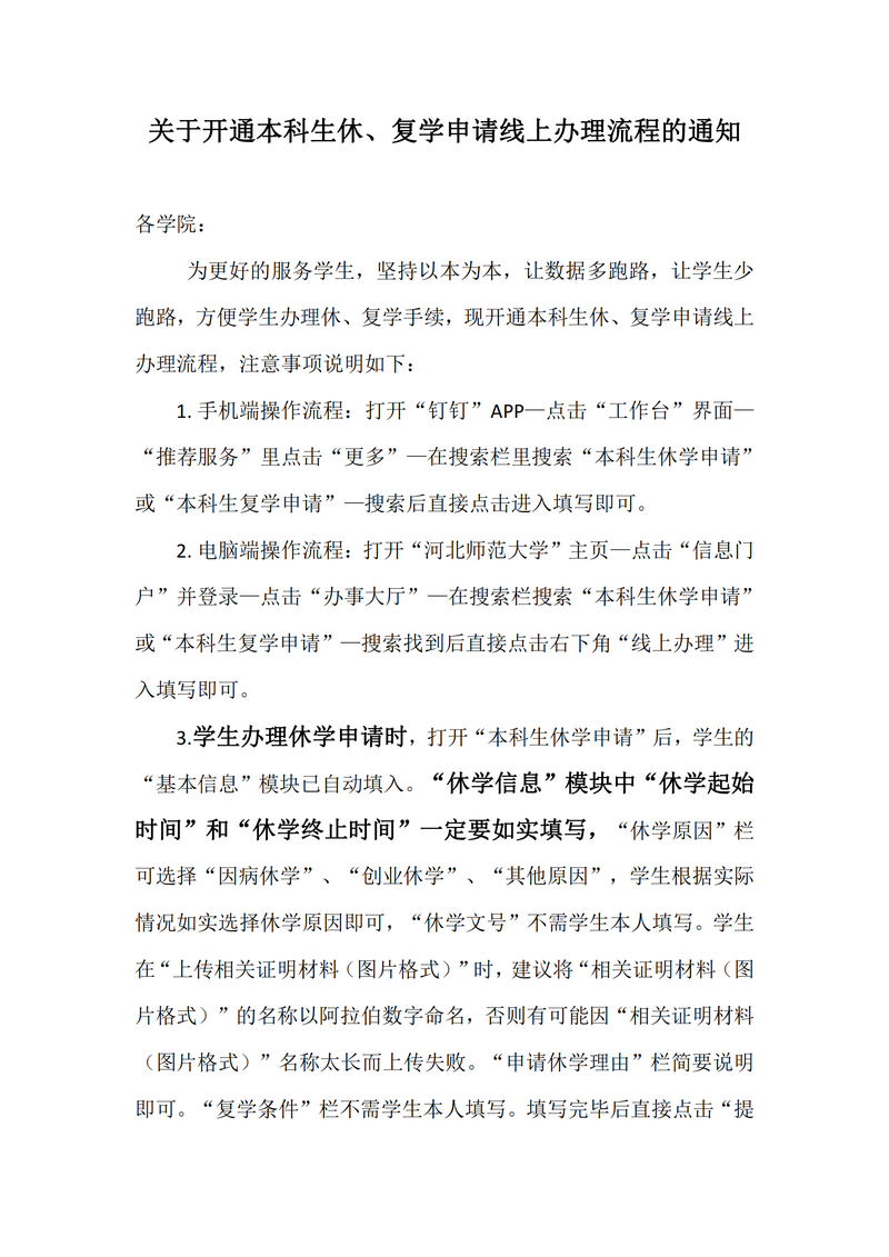 关于开通本科生休、复学申请线上办理流程的通知